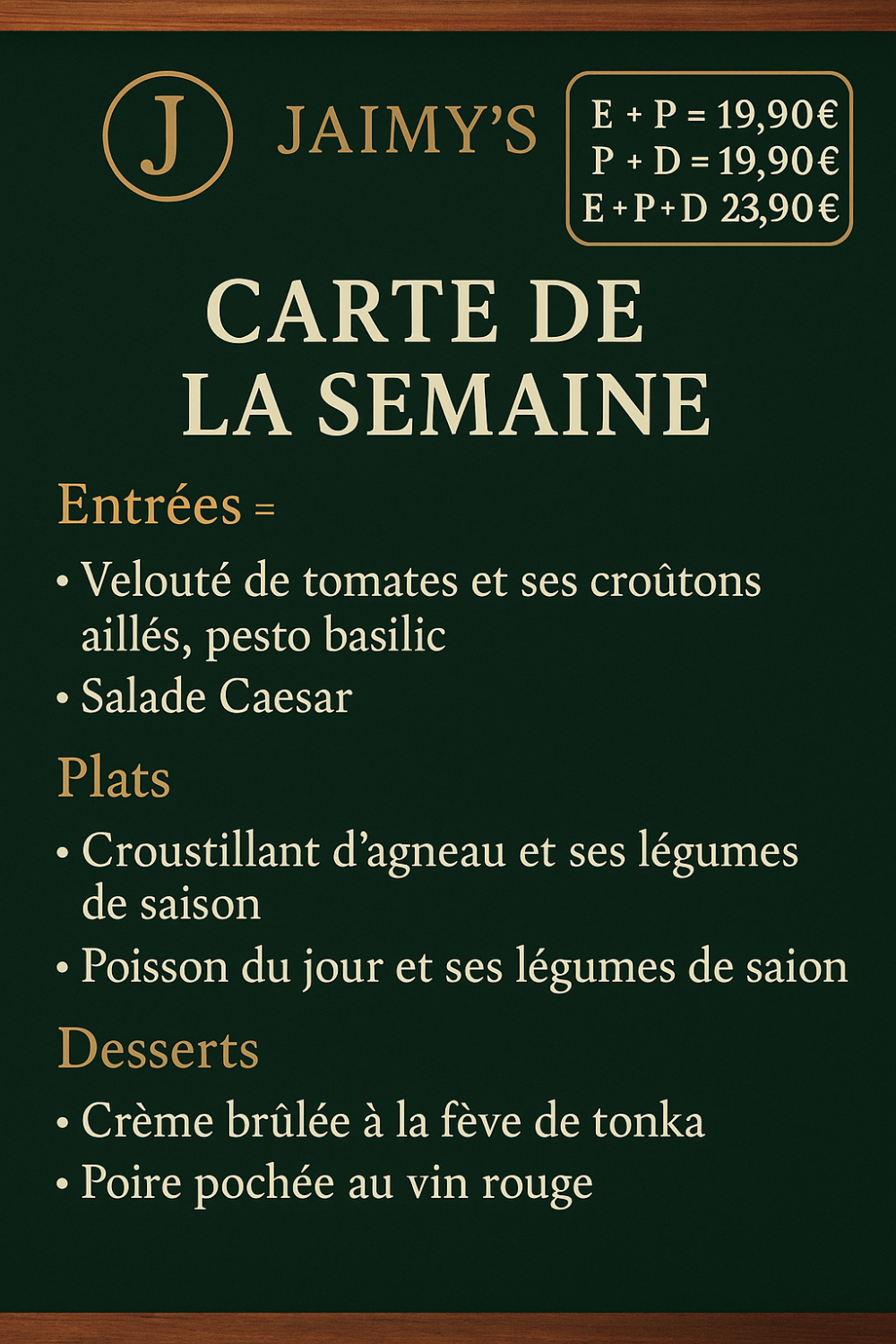 Notre Carte | Restaurant Jaimy's à Saint-Paul-Mont-Penit